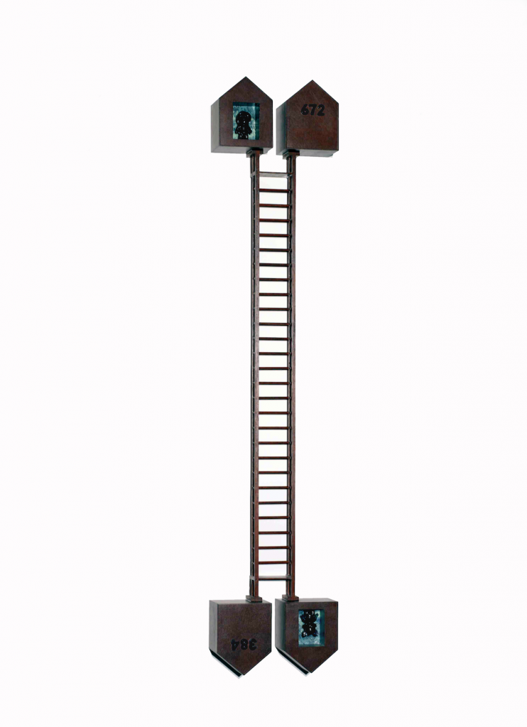 Madeira, resina e fotografia, 137x28x10 cm